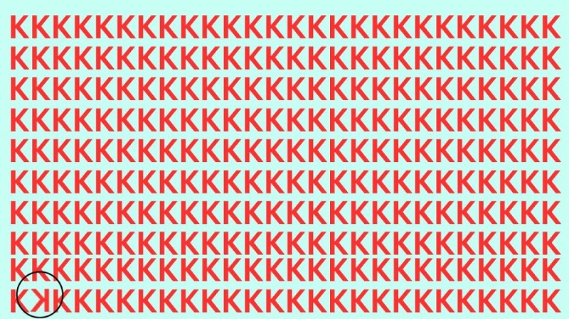 هدف توهم تصویری ، فریب دادن مغز انسان است. توهمات تصویری ، موجب کاهش استرس می شوند و همچنین ورزش مفیدی برای مغز هستند. در این توهم تصویری، حرف K انگلیسی را می بینید اما یک K برعکس در این تصویر است که شما باید آن را در عرض ۱۰ ثانیه پیدا کنید.