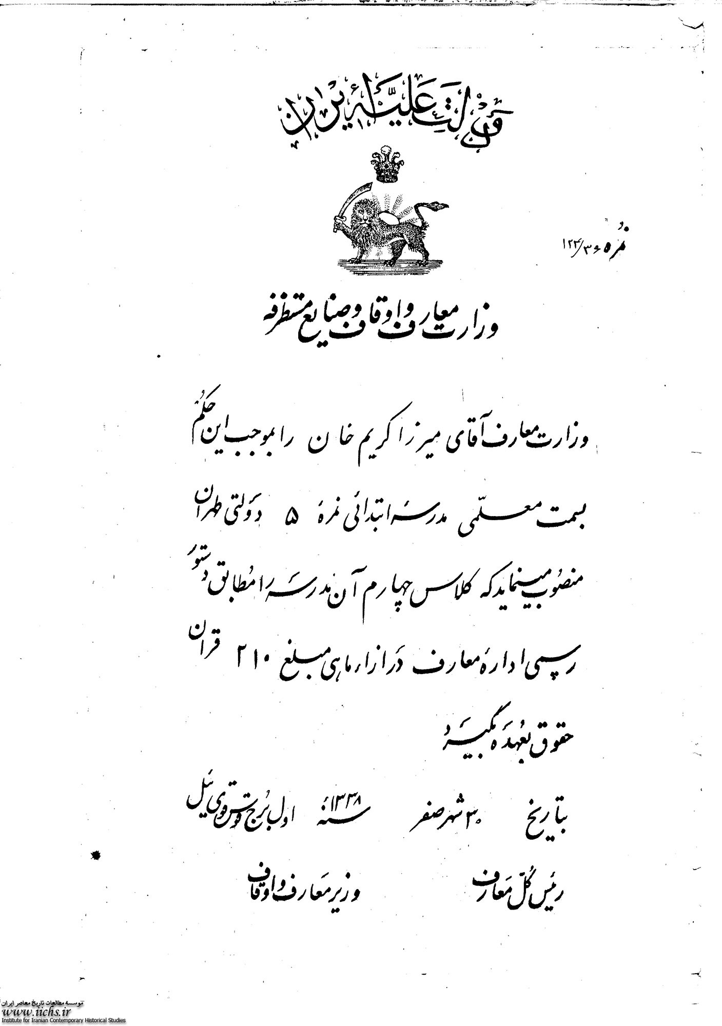 این حکم در سال ۱۳۳۸ هجری قمری صادر شده که مطابق ۱۲۹۸شمسی است.