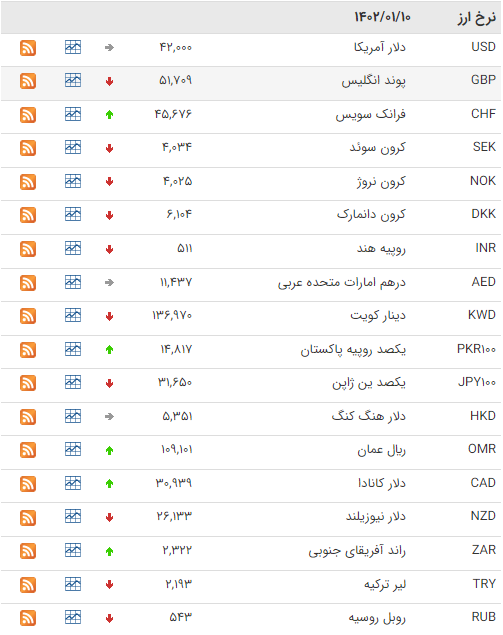 بانک مرکزی امروز (پنجشنبه، ۱۰ فروردین)، نرخ هر پوند را ۵۱ هزار و ۷۰۹و یورو را ۴۵ هزار و ۴۷۱ ریال اعلام کرد.