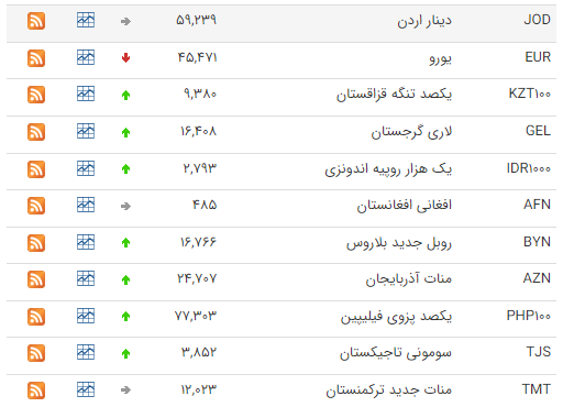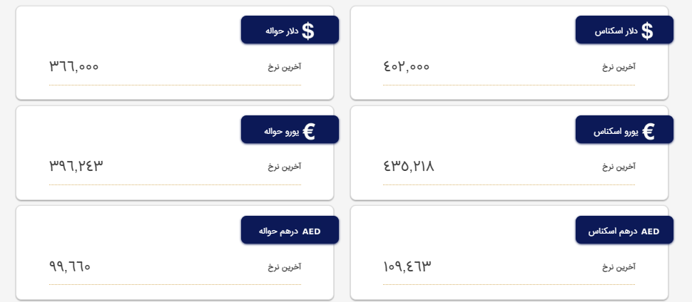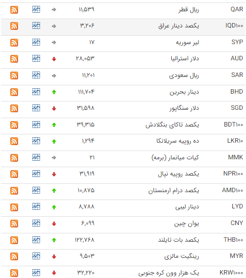 نرخ رسمی درهم امارات عربی متحده، يکصد دينار عراق، افغانی افغانستان و لير سوريه هم بدون تغییر باقی ماند.