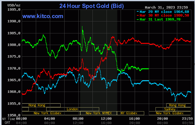 قیمت هر اونس طلا امروز به دلیل تعطیلی بازارهای جهانی 1970 دلار ثابت ماند با این حساب طلا در ماه مارس بازدهی مثبت 7.7 درصدی را به ثبت رساند.