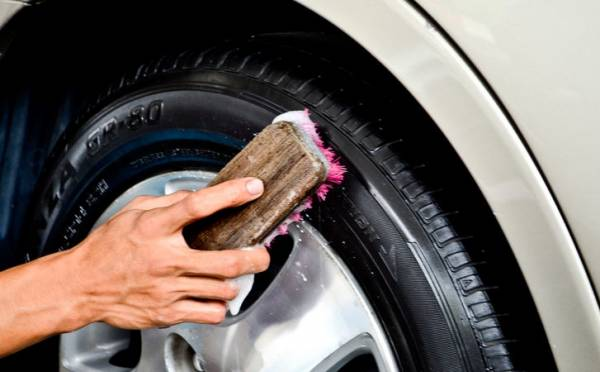 برای این کار از مایع ظرفشویی استفاده کنید. ترکیبی از آب گرم و مایع ظرفشویی می‌تواند به راحتی آلودگی‌ها را از آن بیرون می‌کشد. فقط کافی است که با یک فرچه، همزمان ترکیب مایع ظرفشویی و آب را روی لاستیک و لابلای چرخ پخش کنید.