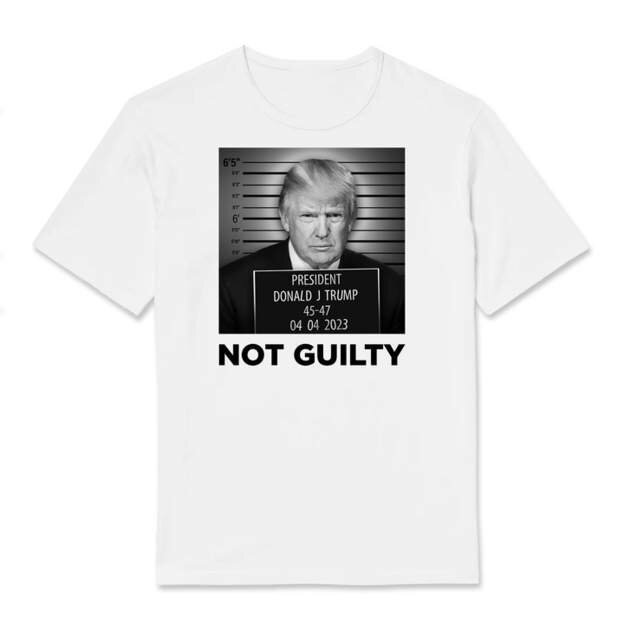 بر روی این تیشرت عبارت «بی گناه» زیر تصویر ترامپ نوشته شده است.
