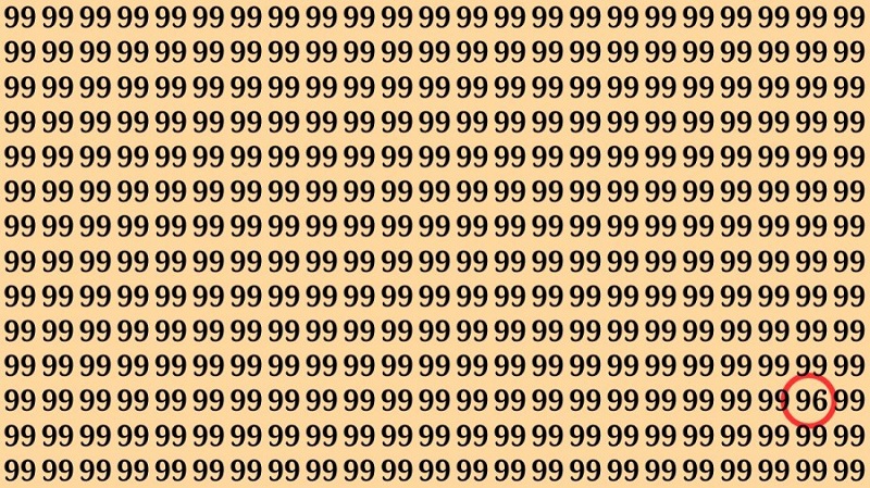 پیدا کردن عدد ۹۶ کار سختی است و تنها افرادی که دید قوی دارند میتوانند آن را پیدا کنند. به تصویر زیر با دقت نگاه کنید.
