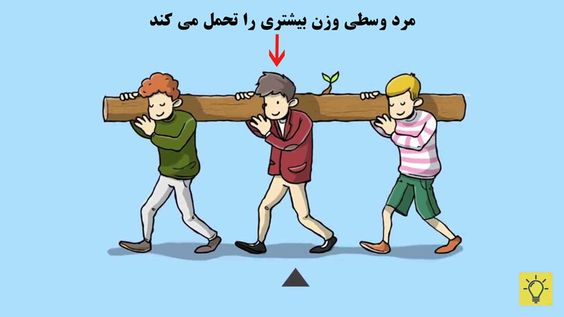 مرد وسط وزن بیشتر تحمل می کند و نقش تکیه گاه را دارد.