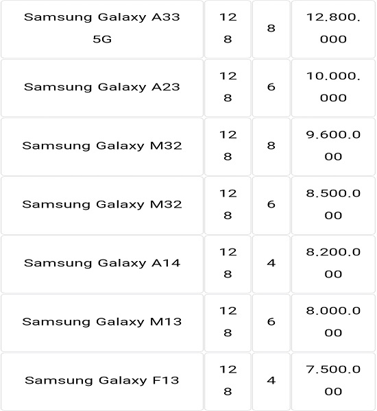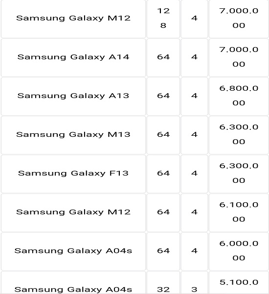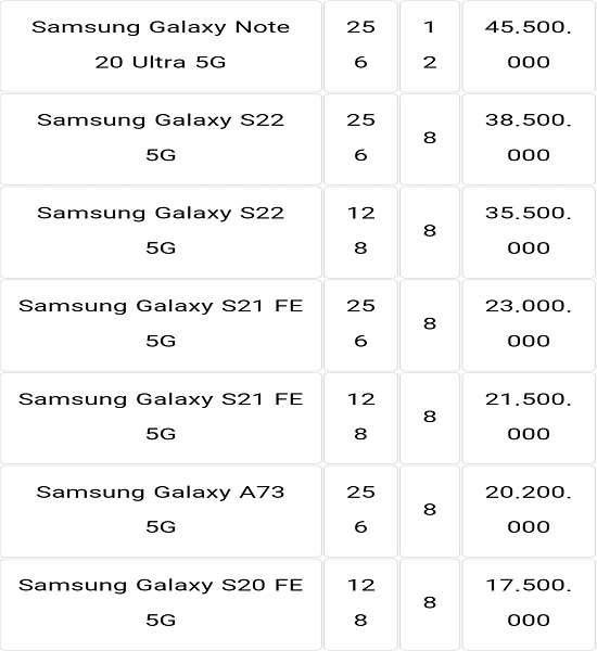 به گزارش سایت طلا، لیست قیمت انواع گوشیهای موبایل سامسونگ موجود در بازار امروز (شنبه، ۲۶/ ۰۱/ ۱۴۰۲) اعلام شد.
