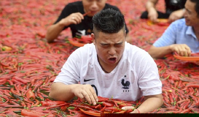 ۱. در چین، مسابقاتی برگزار می شود که مردم باید فلفل چیلی را در حالی که در استخری از آن غوطه ور هستند بخورند.