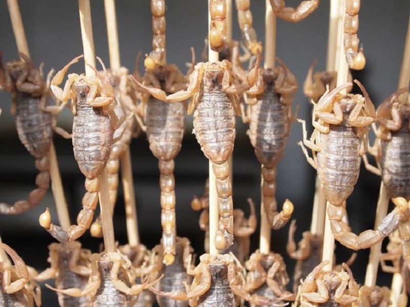 ۶. غذاهای خیابانی آنها بسیار عجیب و غریب است. آیا دوست دارید عقرب روی چوب بخورید؟