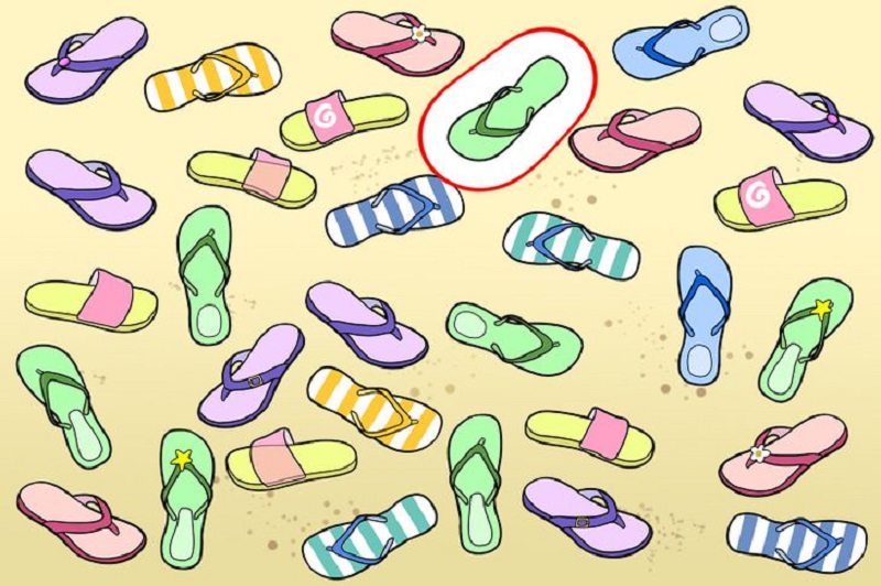 این معمای تصویری راهی سرگرم کننده برای سنجش ضریب هوشی شماست.در این معمای تصویری، سعی کنید دمپایی را که جفتش در تصویر وجود ندارد، پیدا کنید. فقط افراد با ضریب هوشی بالا می توانند دمپایی بدون جفت را در عرض ۱۳ ثانیه تشخیص دهند!