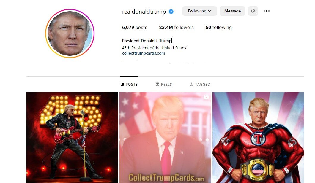 دونالد ترامپ، رئیسجمهوری پیشین آمریکا پس از وقفهای ۲۷ ماهه به دنبال تعلیق حساب کاربریاش در اینستاگرام پس از ماجرای یورش به کنگره در ششم ژانویه ۲۰۲۱، فعالیت در این رسانه اجتماعی را با انتشار پیامهایی درباره کارتهای دیجیتال ترامپ از سر گرفت.