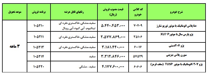 به اطلاع عموم متقاضیان محترم و نمایندگی های مجاز میرساند شرایط فروش فوق العاده برخی از محصولات ایران خودرو با موعد تحویل 90 روزه صرفاً برای منتخبین مرحله اول تابستان 1402 از طریق اولویت بندی وزارت صمت به شرح جدول ذیل ارائه میگردد.
