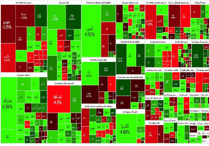 گفتنی است سه نماد کگل، فملی و فارس بیشترین تاثیر در شاخص کل بورس و سه نماد مارون، شگویا و صبا بیشترین تاثیر را در شاخص فرابورس داشته اند.