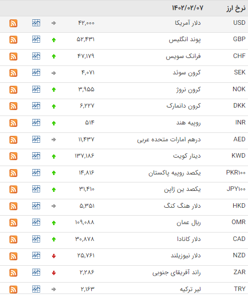 بانک مرکزی امروز، نرخ رسمی ۴۶ ارز را اعلام کرد که بر اساس آن نرخ 23 ارز افزایش و نرخ 9 ارز کاهش یافت، نرخ باقی ارز‌ها ثابت ماند.