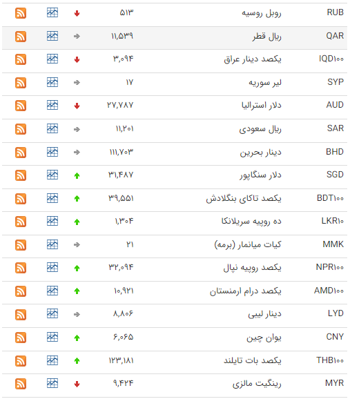 لیر ترکیه هم به ترتیب ۱۹ هزار و ۴۶۵ و ۱۹ هزار و ۶۴۲ ریال خرید و فروش شد. یوان چین نیز ۵۴ هزار و ۵۹۳ ریال خرید و ۵۵ هزار و ۸۹ ریال فروخته شد.