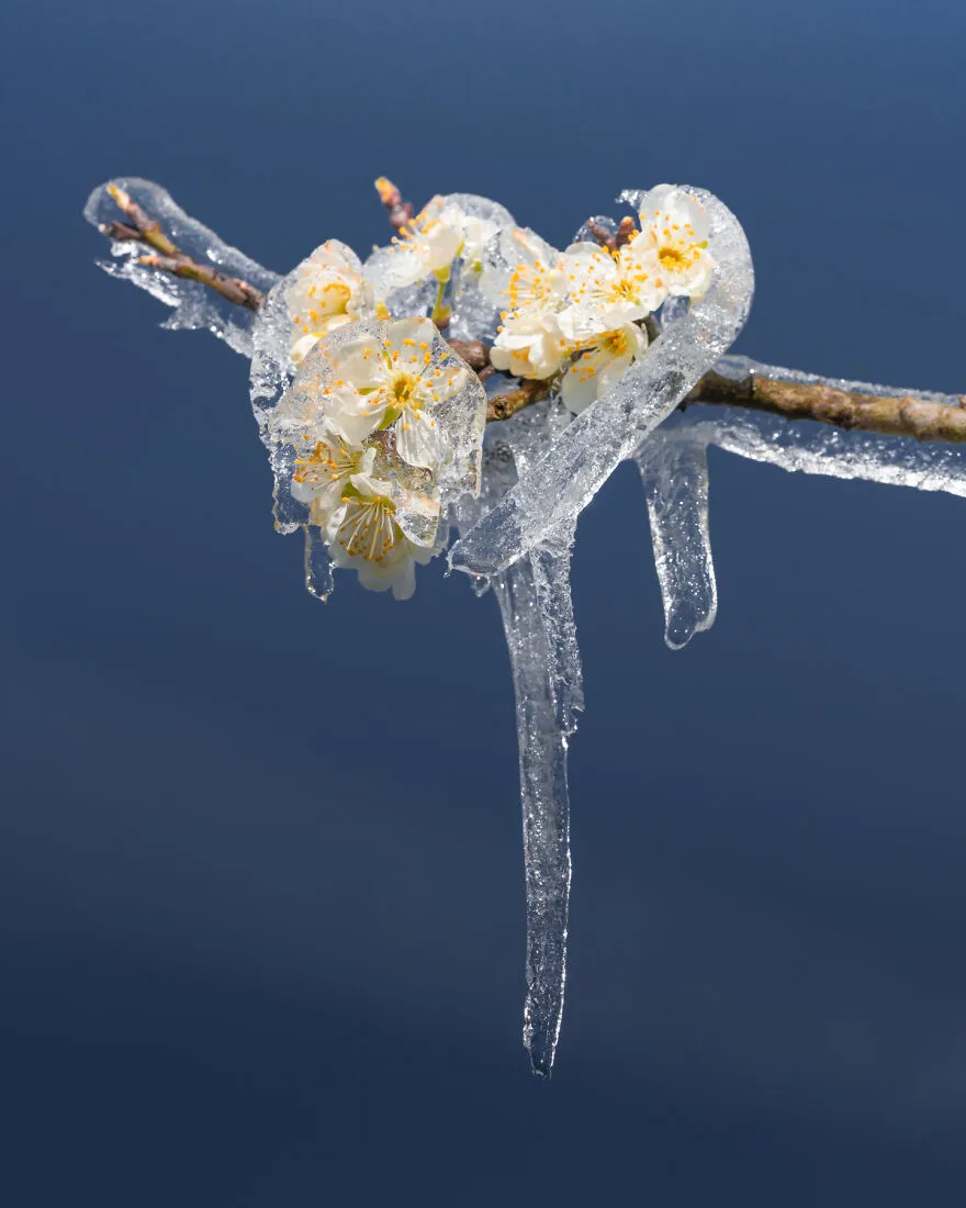 مجموعه عکس «گلهای یخزده»، گلها و غنچههای منجمد منطقه Betuwe هلند که به درختان میوهاش معروف است را به زیبایی هرچه تمامتر نشان میدهد.