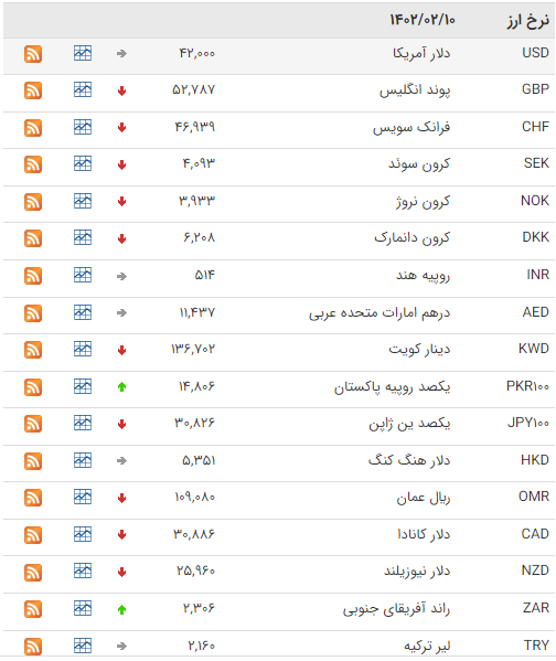 بانک مرکزی امروز نرخ هر دلار را ۴۲ هزار ریال، پوند را ۵۲ هزار و 787 ریال و یورو را ۴۶ هزار و 652 ریال اعلام کرد.