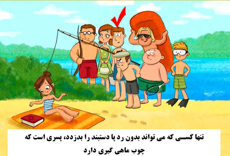 تنها کسی که می تواند بدون رد پا دستبند را بدزدد، پسری است که چوب ماهی گیری دارد.
