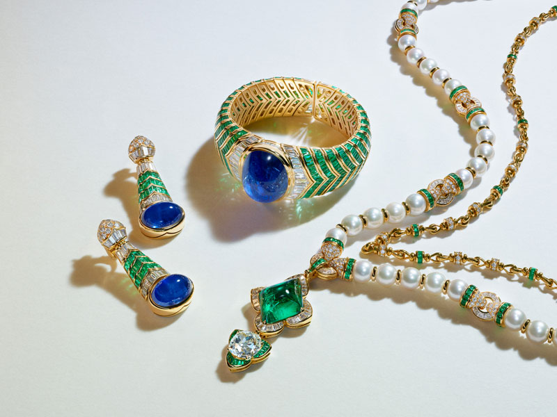 قطعات این کلکسیون شامل یک گردنبند الماس گلابیشکل ۹۰ قیراطی هندی از هَری وینستون، یک حلقهی کارتیهی یاقوت و الماس که رنگ قرمز آن به رنگ خون کبوتر است، یک سری آثار مدرن و قدیمی بولگاری و اقلامی از برندهای لوکس دیگر از قبیل تیفانی و ون کلیف آرپلز میشود.