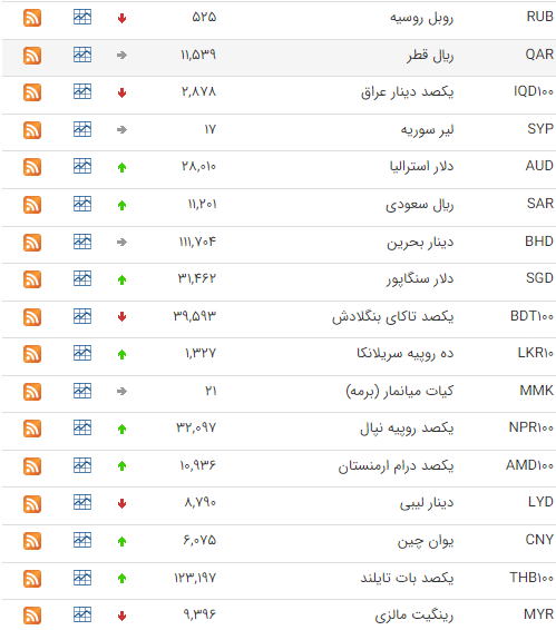 پوند انگلیس ۶۷ هزار و ۷۱۸ تومان، یوان چین ۷ هزار و ۸۳۰ تومان، دلار کانادا ۳۹ هزار و ۷۳۰ تومان و دلار استرالیا ۳۶ هزار و ۲۰ تومان دادوستد شد.