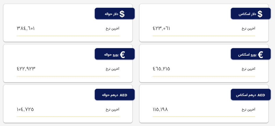 همچنین هر درهم اسکناس نیز 11 هزار و 519 تومان قیمتگذاری شد و هر درهم حواله به 10 هزار و 472 تومان رسید.