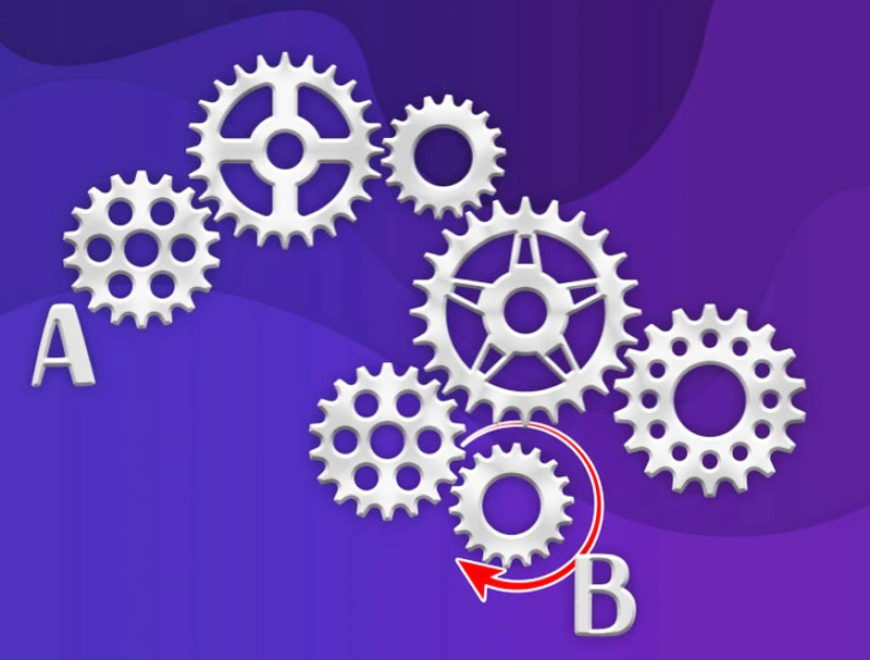 فقط افرادی با مغز تیز می توانند این معما را حل کنند. آیا می توانید تشخیص دهید که اگر چرخ دنده A در خلاف جهت عقربه های ساعت حرکت کند، چرخ B در کدام جهت حرکت می کند؟
