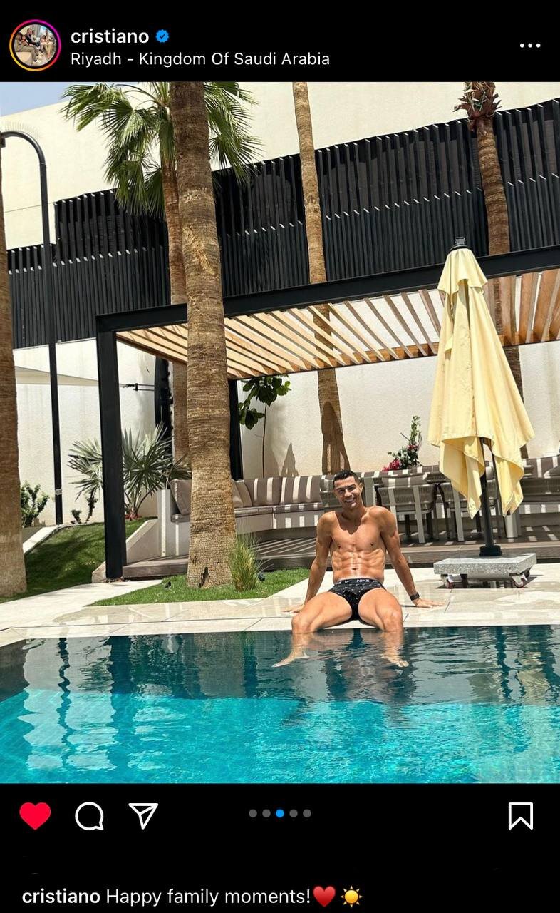 او تصاویری از بازی و تفریح به همراه فرزندانش و جورجینا را منتشر کرد. فوق‌ستاره پرتغالی در توضیح تصاویرش نوشت: «لحظات شاد خانوادگی».