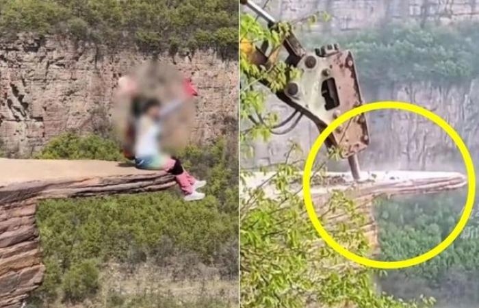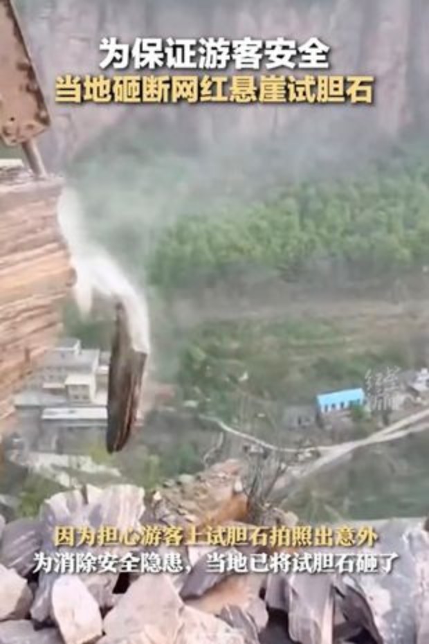 به گزارش سایت طلا، لبه صخره ای در چین که به «آزمون شجاعت» معروف بود تخریب شد.