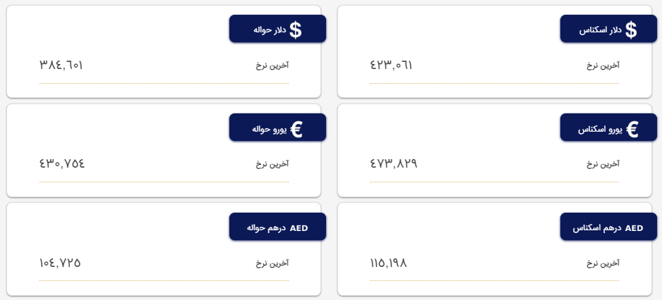 نرخ رسمی درهم امارات متحده عربی، یوان چین و افغانی افغانستان هم بدون تغییر باقی ماند.