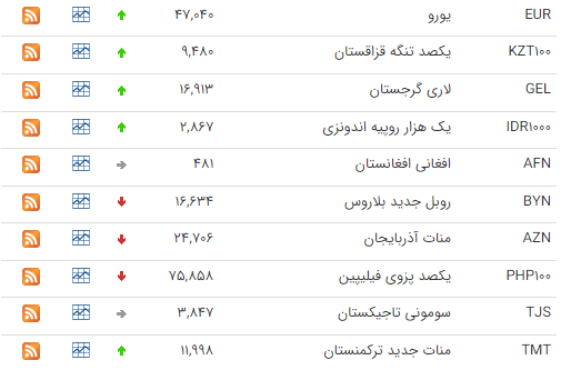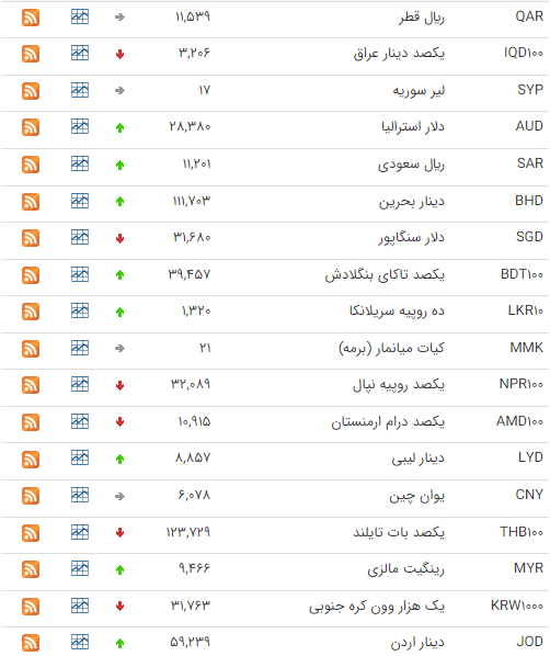 بر این اساس نرخ رسمی یورو، یکصد ین ژاپن، دلار کانادا و دلار استرالیا افزایش و نرخ پوند انگلیس، لیر ترکیه و یکصد دینار عراق کاهش یافت.