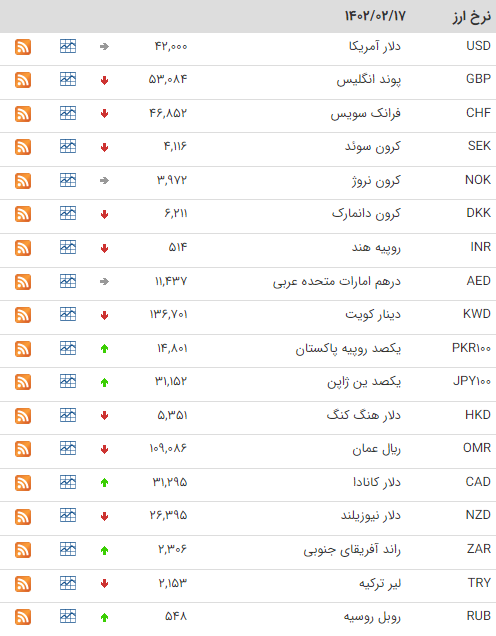 بانک مرکزی امروز یکشنبه (۱۷ اردیبهشت ۱۴۰۲)، نرخ هر پوند را ۵۳ هزار و ۸۴ ریال و یورو را ۴۷ هزار و ۴۰ ریال اعلام کرد.