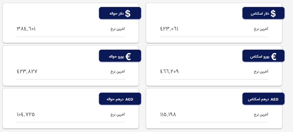 همچنین هر درهم اسکناس نیز 11 هزار و 519 تومان قیمت‌گذاری شد و هر درهم حواله به 10 هزار و 472 تومان رسید.