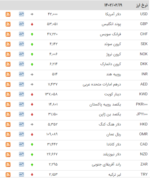 بانک مرکزی امروز سه شنبه (۱9 اردیبهشت ۱۴۰۲)، نرخ هر پوند را 53هزار و 51ریال و یورو را 46 هزار و 283ریال اعلام کرد.