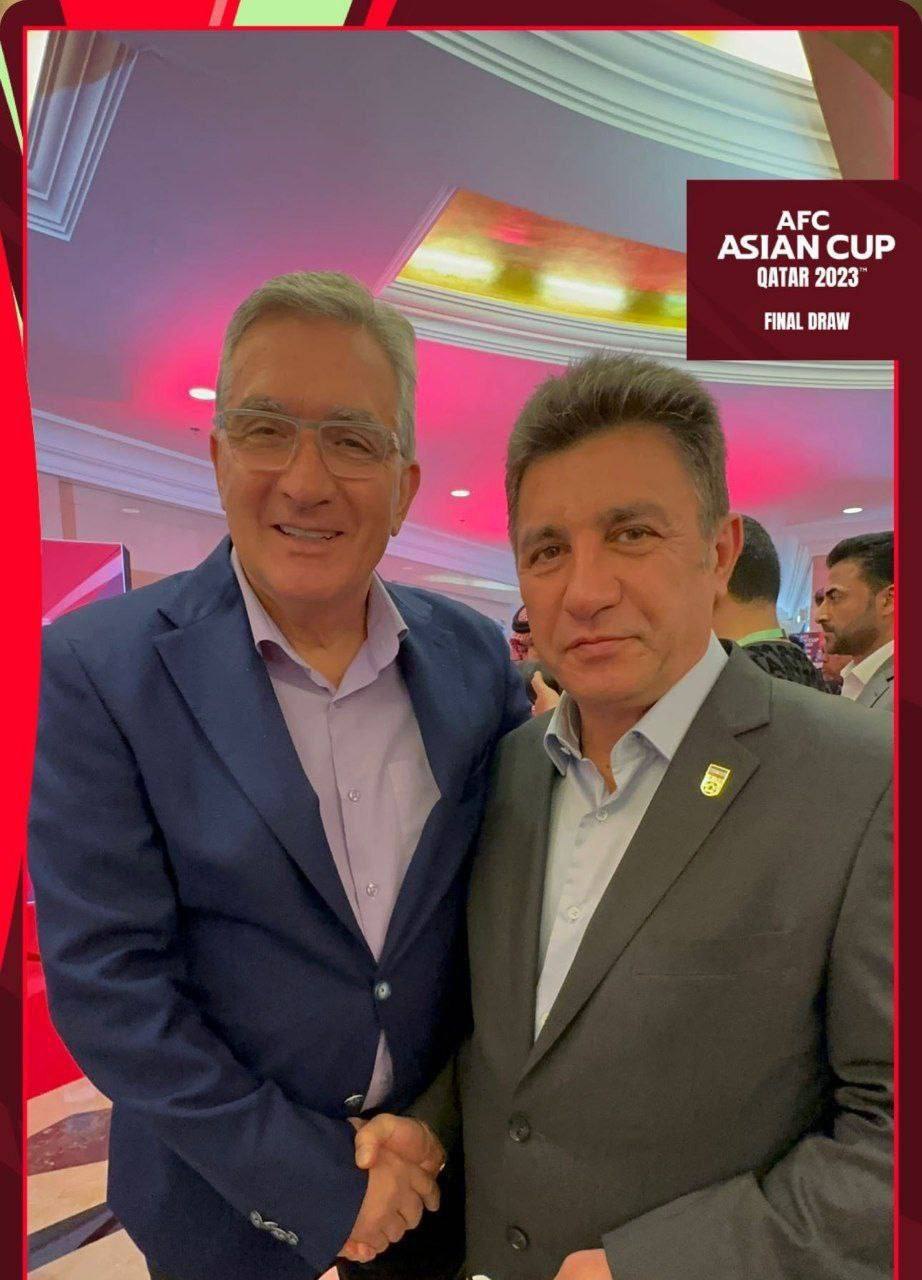 عکس یادگاری قلعهنویی و برانکو قبل از شروع مراسم قرعه کشی بازی های جام ملت های آسیا