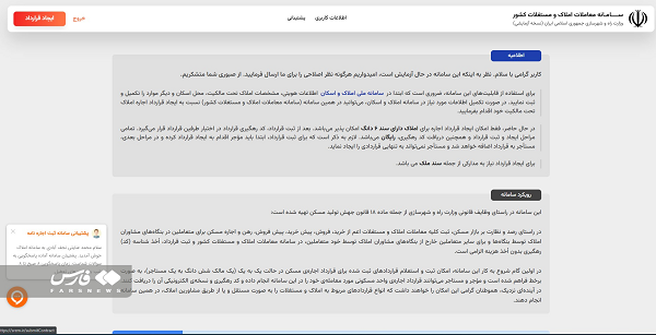 به گزارش سایت طلا، مراحل ثبت قرارداد اجاره در این سامانه بسیار ساده تعریف شده و در گام اول باید پس از تایید مدارک هویتی برای ورود به سامانه بر روی گزینه ایجاد قرارداد کلیک شود.
