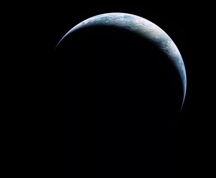 این عکس خیرهکننده، هلال آفتابزده سیاره زیبای ما را در پسزمینه سیاه فضا نشان میدهد. در این تصویر با چنین پرسپکتیوی، زمین همانند تصویری تلسکوپی از سیارهای دوردست کوچک است و خط افق کاملاً در میدان دید قرار دارد.