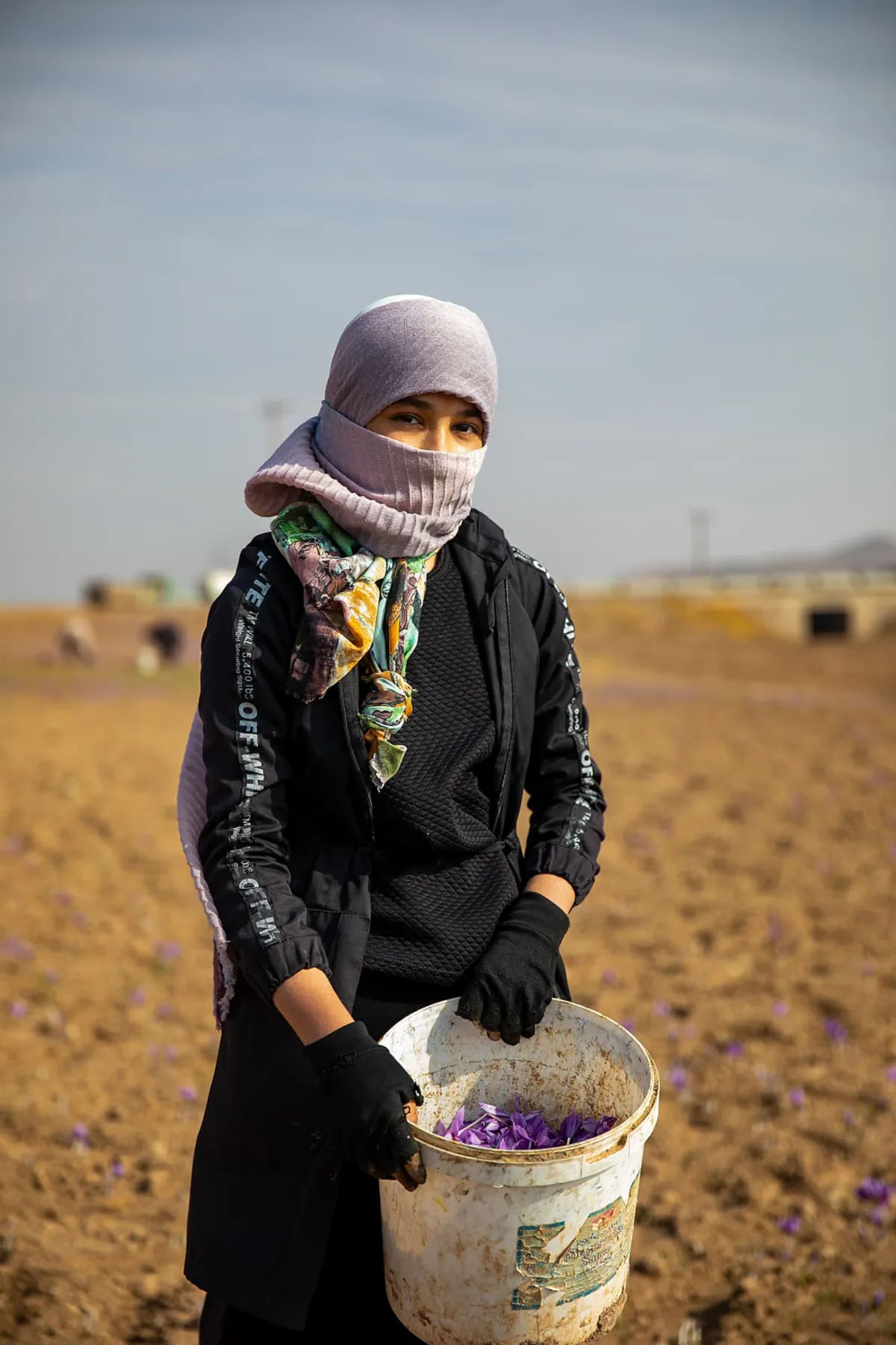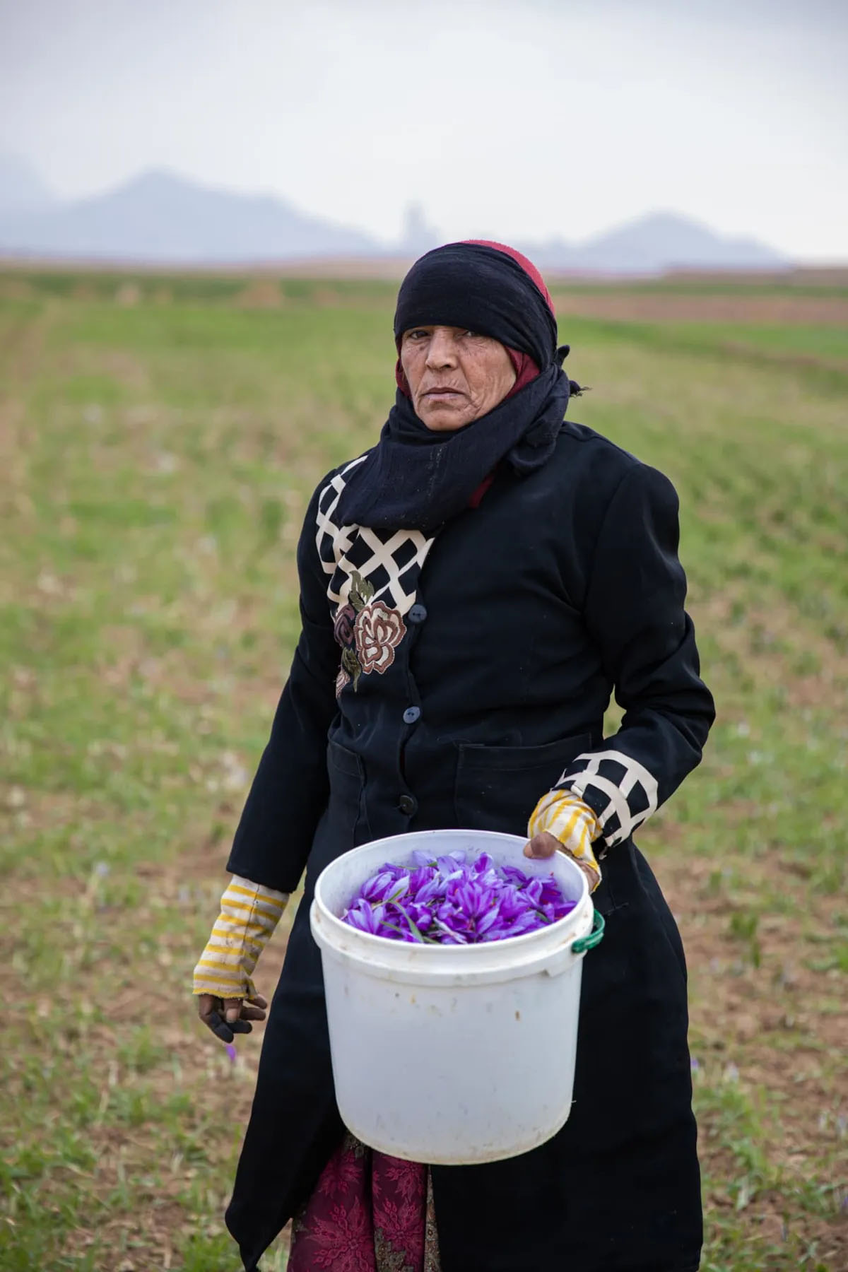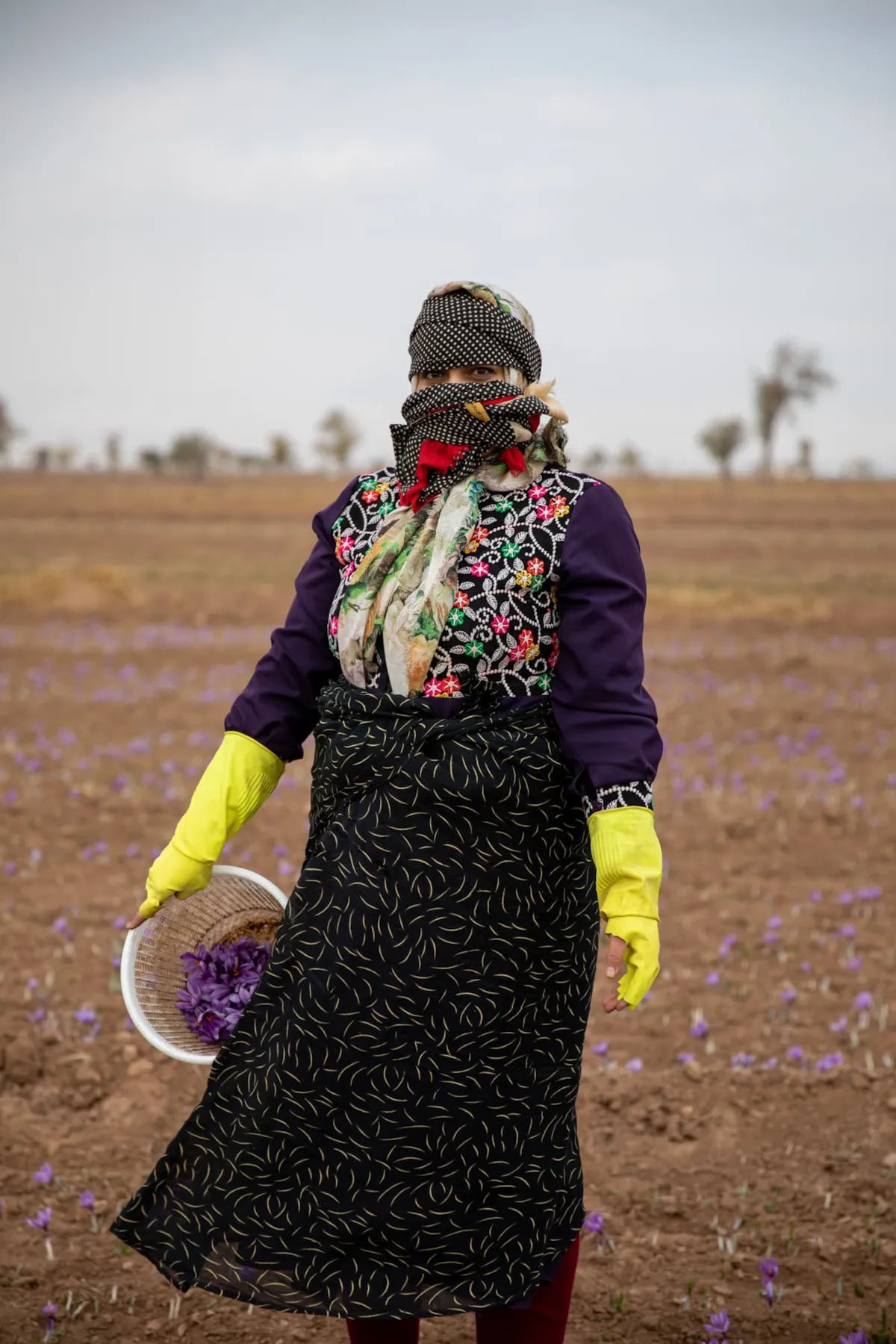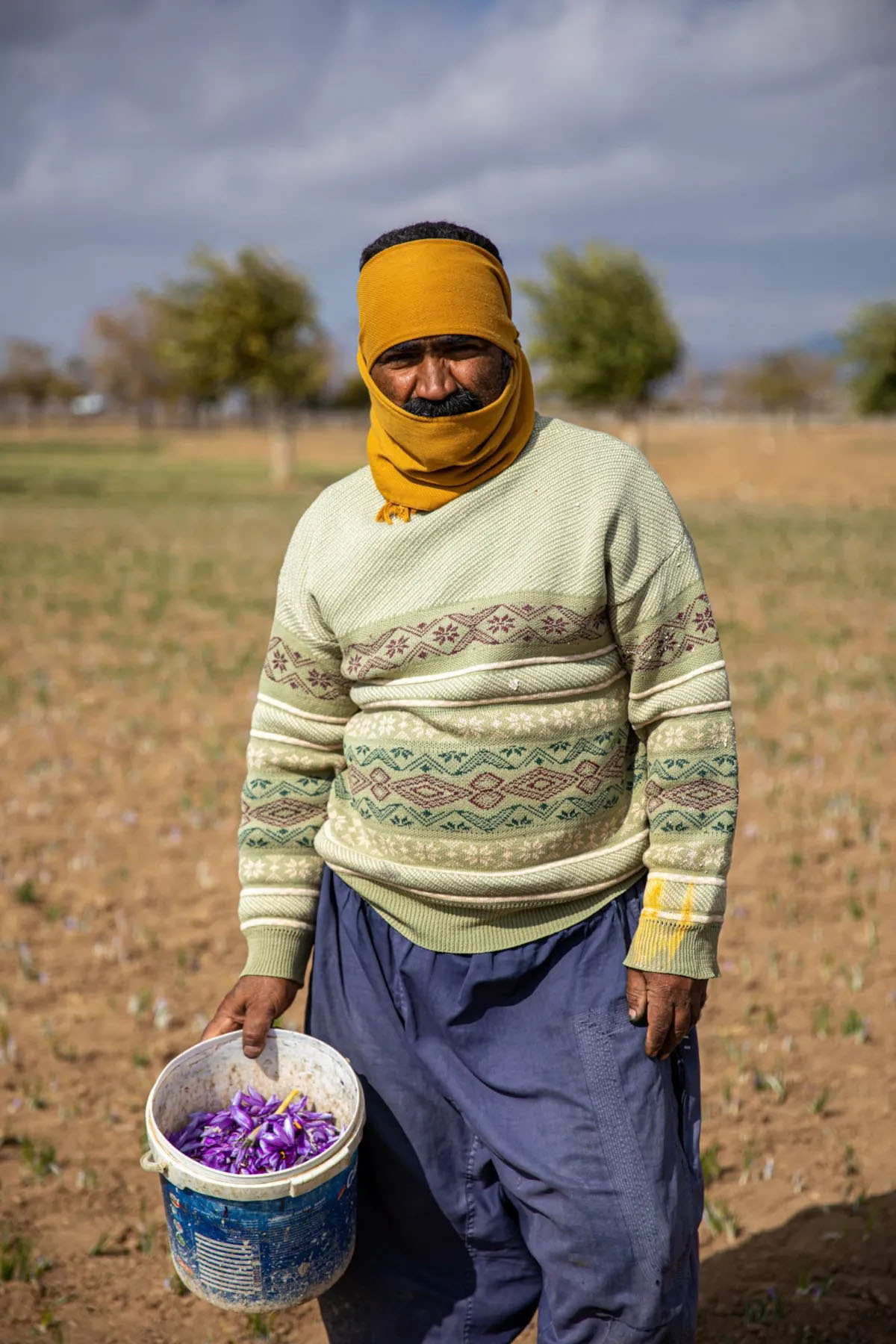 برداشت زعفران کار بسیار سخت و طاقتفرسایی است که کاملاً با دست انجام میگیرد. زعفرانچینان با دستانشان گیاهی جادویی را میچینند که خودشان از آن محروم هستند؛ اینگونه دست زعفرانچینان از زعفران دور میشود.