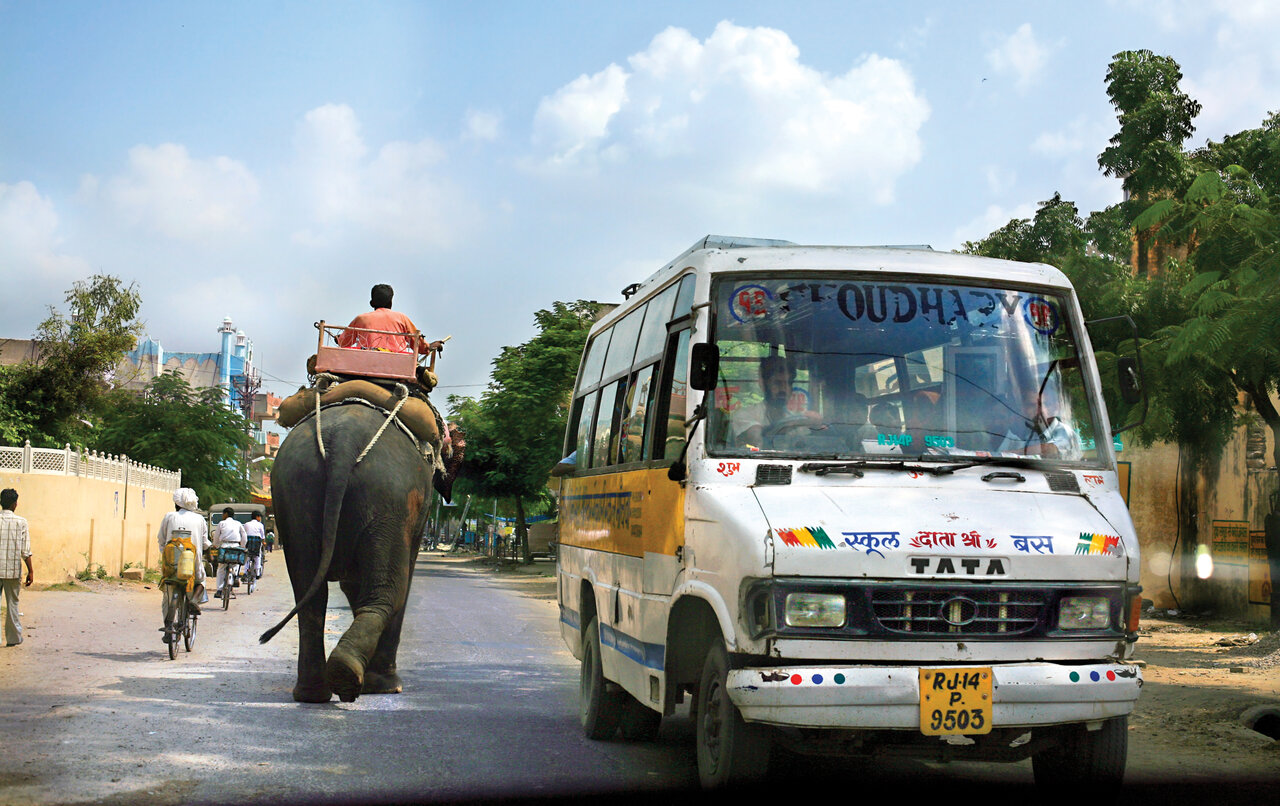 در خیابانهای اطراف تاجمحل ترافیک روانی به شکل قدیمی و جدید جریان دارد؛ ون و فیل و دوچرخه و سهچرخه