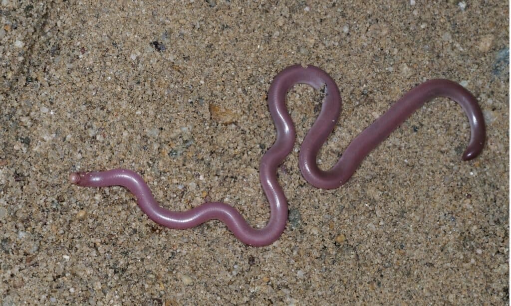 مار کرم اروپایی یا مار کور، Typhlops vermicularis. مارهای کور شبیه کرم هستند که اغلب دارای بدن خاکستری یا صورتی هستند.مارهای کرم کور دقیقاً شبیه کرم خاکی هستند اما در واقع مار هستند.
