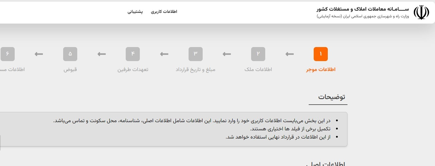 پس از آن با ثبت اطلاعات موجر، اطلاعات ملک، مبلغ و تاریخ قرارداد، تعهدات طرفیت، ثبت قبوض و در نهایت ثبت اطلاعات مستاجر، زمینه دریافت کد رهگیری مهیا خواهد شد.