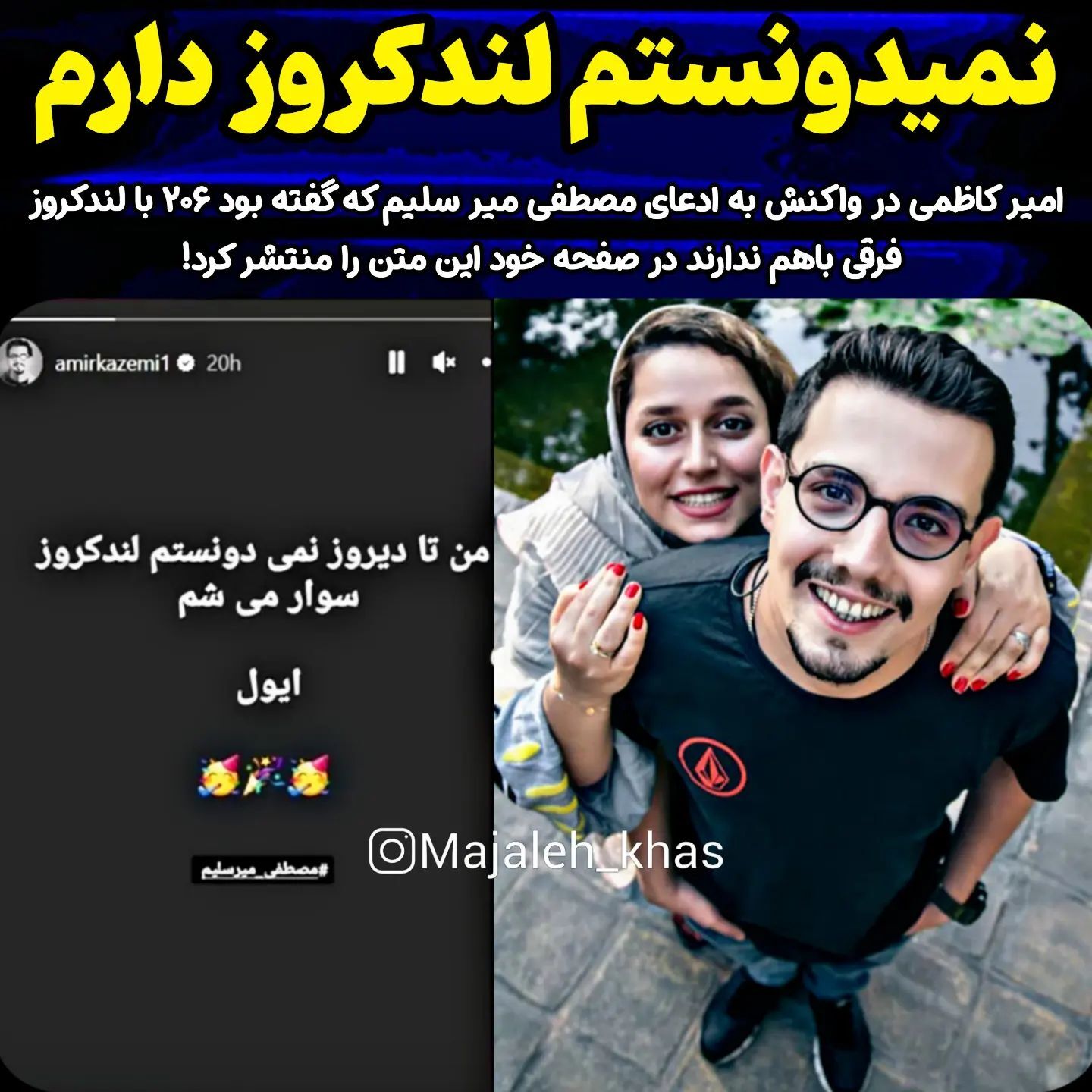 امیر کاظمی، بازیگر لیسانسهها در واکنش به اظهارات میرسلیم که لندکروز با ۲۰۶ چه تفاوتی دارد؟، این استوری را به اشتراک گذاشت.