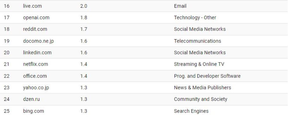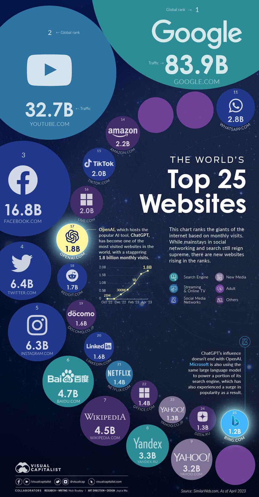 در اینجا لیست کامل ۲۵ وب سایت پربازدید تا آوریل ۲۰۲۳ آمده است: