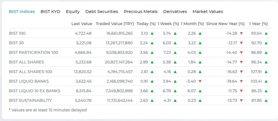 شاخص اصلی بورس استانبول، BIST۱۰۰ تا ساعت ۱۱:۳۵ به وقت ایران، ۳.۱۰ درصد رشد کرد. پیشبینی میشود که این روند صعودی ادامهدار باشد.