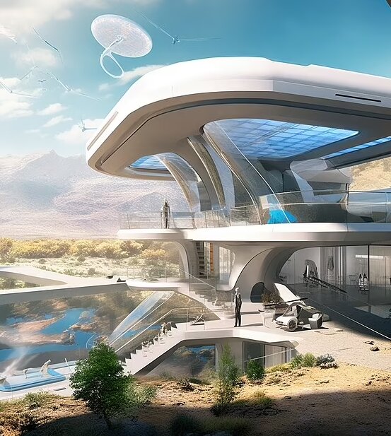 هوش مصنوعی با توجه به توسعه فناوریهای گوناگون، پیشبینیهایی را در مورد شکل خانهها در سال ۲۰۵۰ داشته و تصاویر خیرهکنندهای را ارائه داده است.