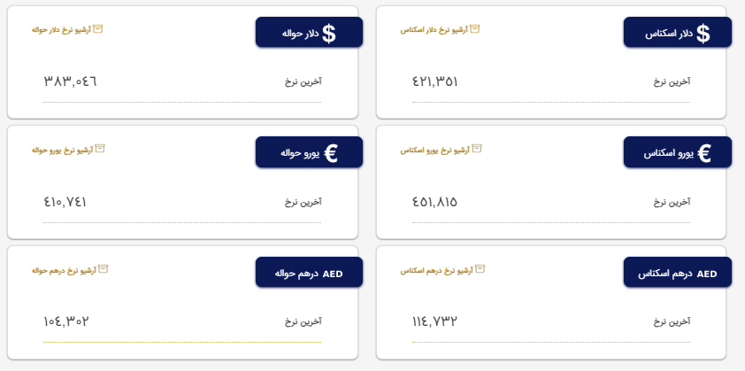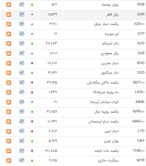 همچنین هر درهم اسکناس نیز 11 هزار و 473 تومان قیمتگذاری شد و هر درهم حواله به 10 هزار و 430 تومان رسید.
