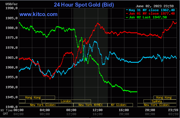 قیمت هر اونس طلا امروز در لحظه تنظیم این گزارش با 30 دلار کاهش به 1948 دلار رسید.