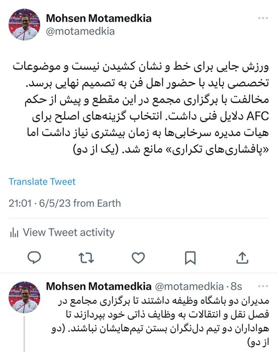 ، مدیر کل روابط عمومی وزارت ورزش در واکنش به اظهارات حسین قربان زاده رئیس سازمان خصوصی سازی در مورد زمان برگزاری مجمع دو باشگاه استقلال و پرسپولیس نوشت: ورزش جایی برای خط و نشان کشیدن نیست.