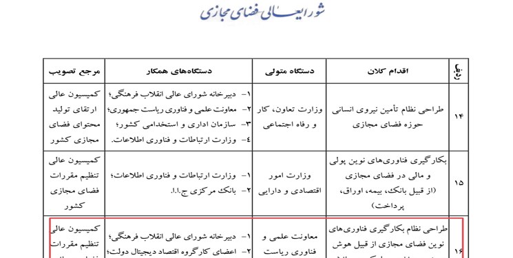 تنها جایی که عنوان هوش مصنوعی در مصوبات اخیر منتشر شده از سوی شورای عالی به چشم می خورد به سند راهبری جمهوری اسلامی ایران در فضای مجازی مربوط می شود که در مرداد ماه سال گذشته به تصویب رسیده است. در بخش اقدامات کلان این سند آمده است که طراحی نظام بکارگیری فناوری های نوین مثل هوش مصنوعی بر عهده معاونت علمی و فناوری ریاست جمهوری است.  اما لازمه ایفای نقش معاونت علمی در این خصوص، وجود یک سیاستگذاری منسجم در خصوص هوش مصنوعی  از سمت شورایعالی است.