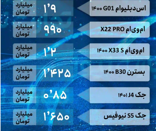 | آریو | یک میلیارد و 90 میلیون تومان | یک میلیارد و 90 میلیون تومان |