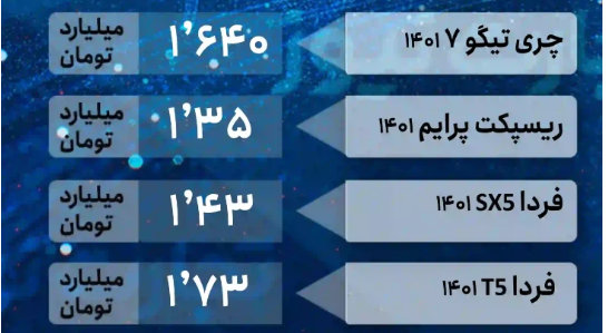| تیبا | 350 میلیون تومان | 345 میلیون تومان |