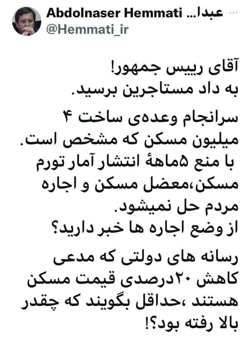 رئیس کل پیشین بانک مرکزی با انتقاد به وضعیت مسکن نوشت: از وضع اجارهها خبر دارید؟